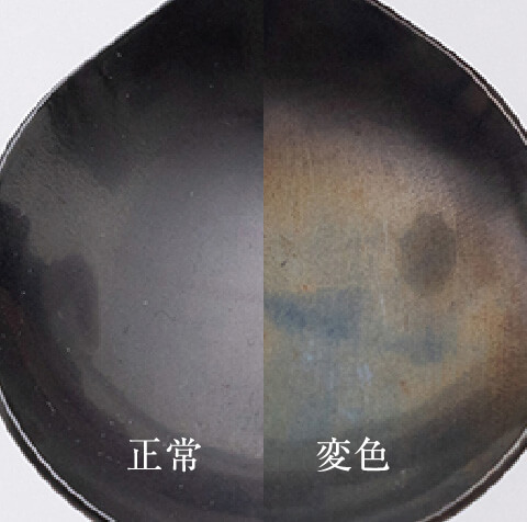 - 黒染めに触れる成分によっては、化学反応を起こし金属の斑点が出る場合があります。