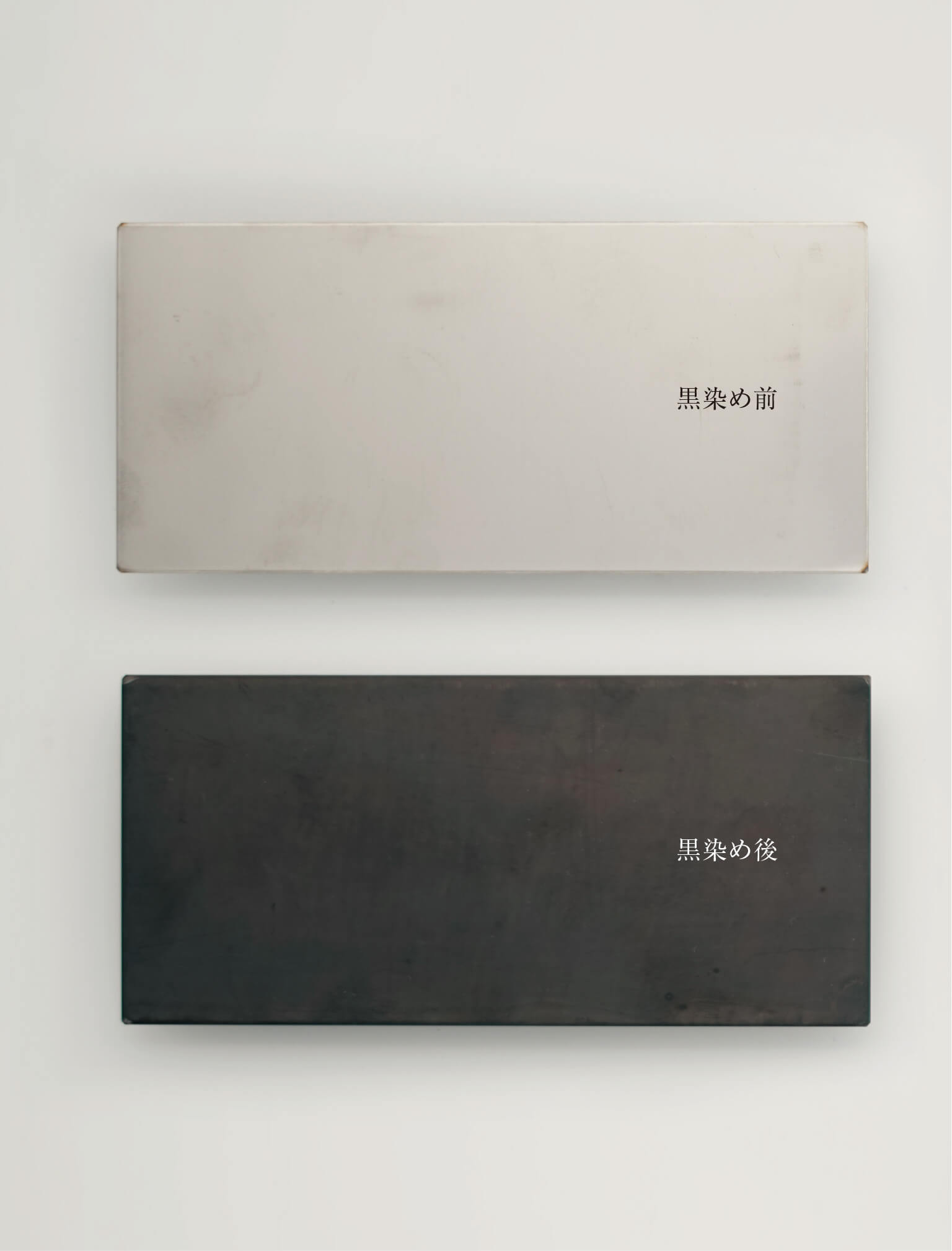 金属の黒染めは、塗料で覆う「塗装」とは異なり、金属そのものと化学反応を起こして黒く変化させる技術です。金属を専用の液に浸すことで、表面に「酸化皮膜」と呼ばれる極めて薄い膜が形成され、素材の質感を活かした黒に仕上がります。光沢のある金属は艶のある黒に、マットな金属は深く静かな黒に。寸法への影響が少ないことから、産業用途でも用いられてきた加工法です。無機質な印象の金属に、温かみや深みをもたらすこの技術を、日常の中でも自然に感じていただけたらと願っています。